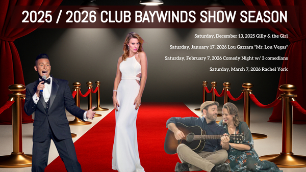 Get ready for an unforgettable season of live entertainment at Club Baywinds! With our exciting 4-show lineup, you can choose any 3 or all 4 shows and save $4 per ticket—making it the perfect time to plan a night out (or four). Don’t miss your chance to experience the best of Club Baywinds while enjoying exclusive savings. Grab your seats today and make this season one to remember!